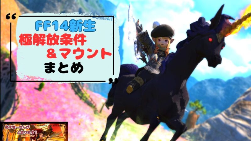 今回は、新生で挑むことができる極コンテンツの開放条件と貰えるマウントを紹介したいと思います。